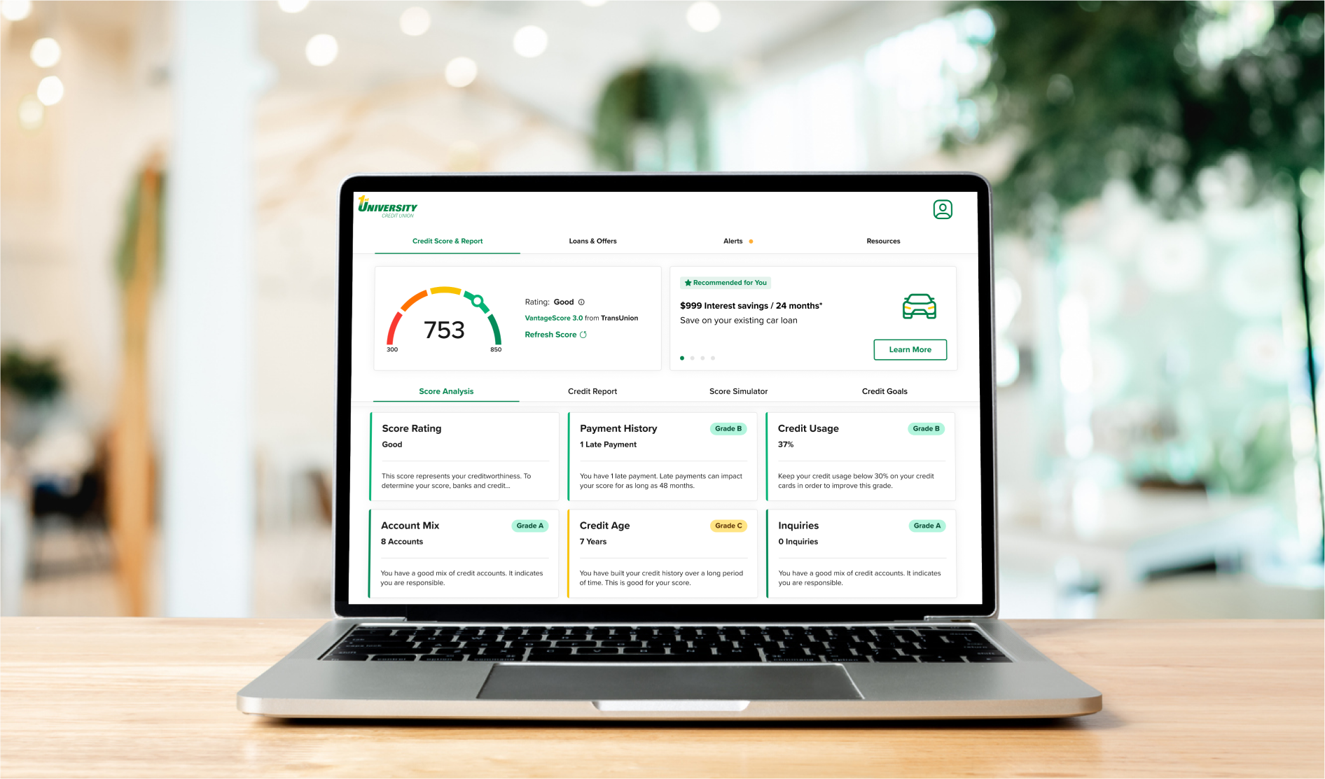 And good news — you don’t have to hunt down a single thing. SavvyMoney inside your online banking and mobile app makes it ridiculously easy to check your score, view your full credit report, track changes, and get personalized tips to improve it.